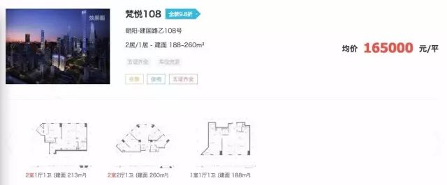 而在北京,同样是在黄金地段朝阳区的一套建筑面积约188平方米的房子,