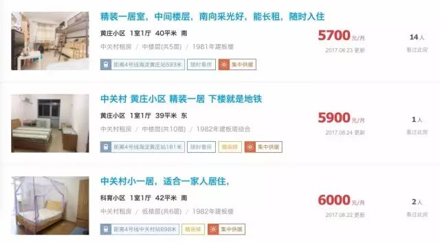 而在北京中关村附近的一室一厅,有家具,还是精装房,