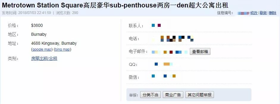 在VanPeople的房屋出租分类上,Metrotown附近的一房一厅公寓,一个月的房租为:1750加币!两房一Den甚至要3800加币!