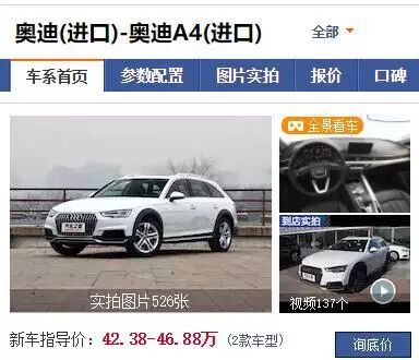 在国内奥迪A4轿车可以卖到42万到46万的价格,
