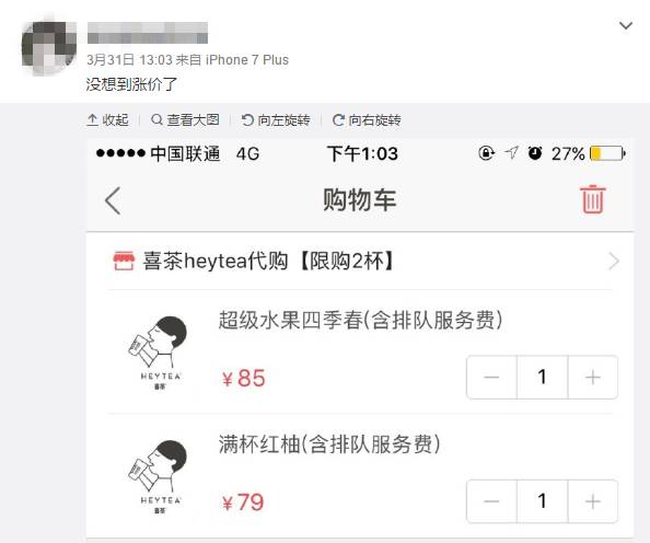 新晋奶茶网红店的一杯奶茶代购,50大洋就没了…
