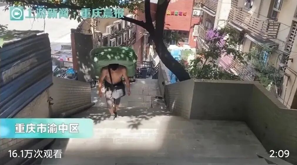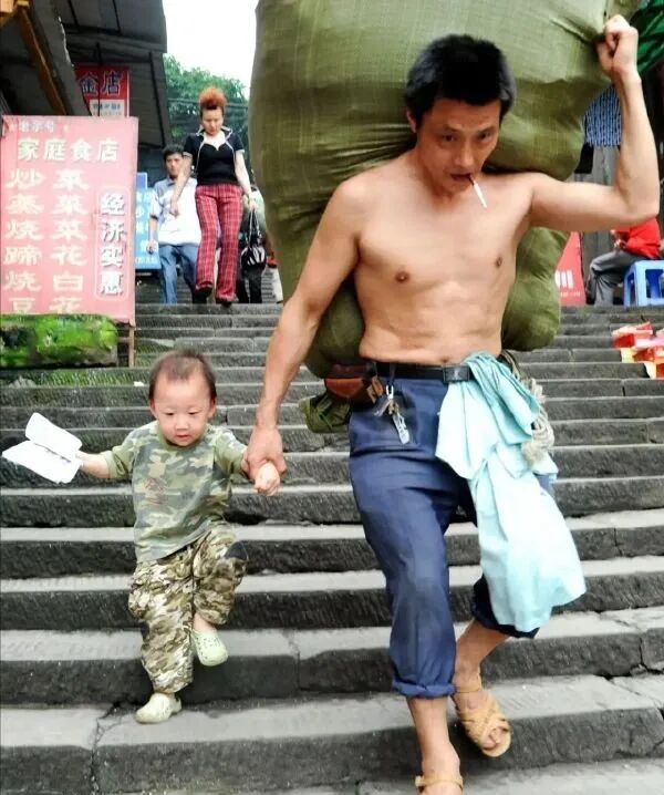 因为一张“十年父子照”火遍全国的“棒棒父亲”冉光辉,为了更好地照顾自家儿子,每天平均负重100多层楼,夏天里一天要灌下20斤白开水。