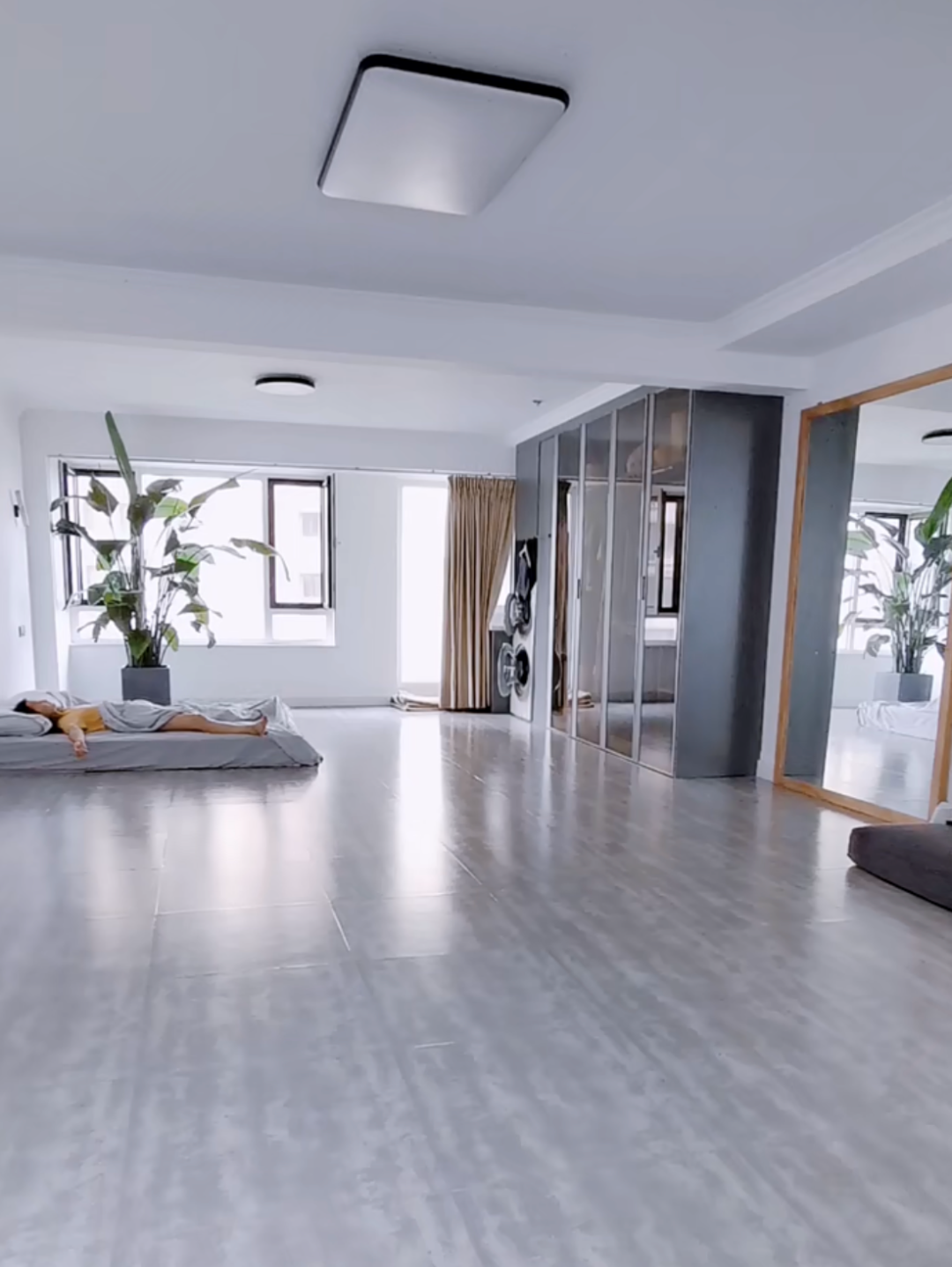 这个房子原本是两室一厅的户型,因为她酷爱运动,尤其是瑜伽,需要大量的活动空间,便将所有的非承重墙都砸掉了,形成一个十分开阔的大开间。