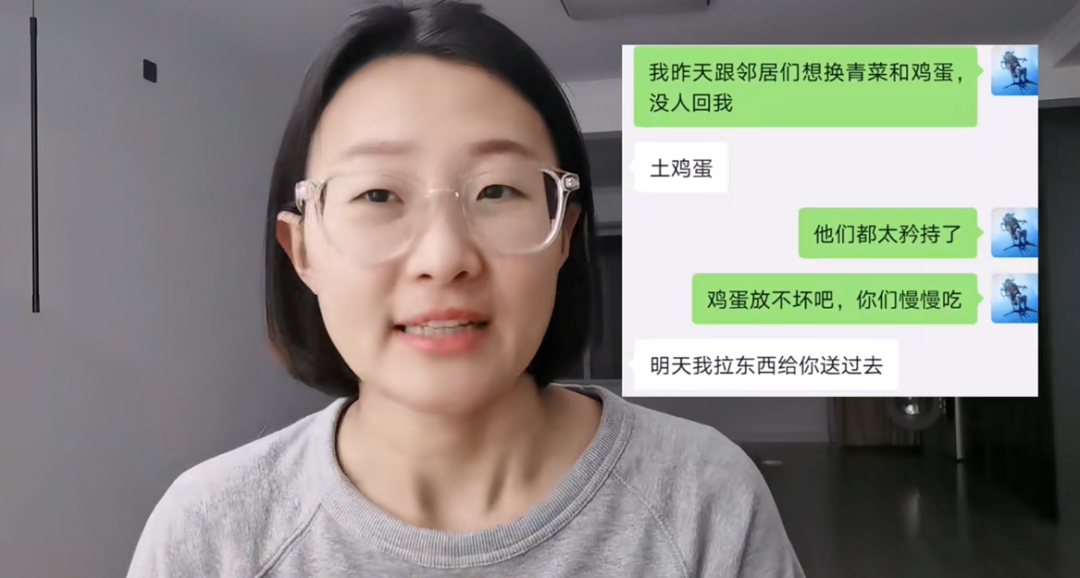 朋友知道她践行的生活方式后,决定把家里过剩的鸡蛋给她,而乔桑也不白拿,用自己看完的书做交换。